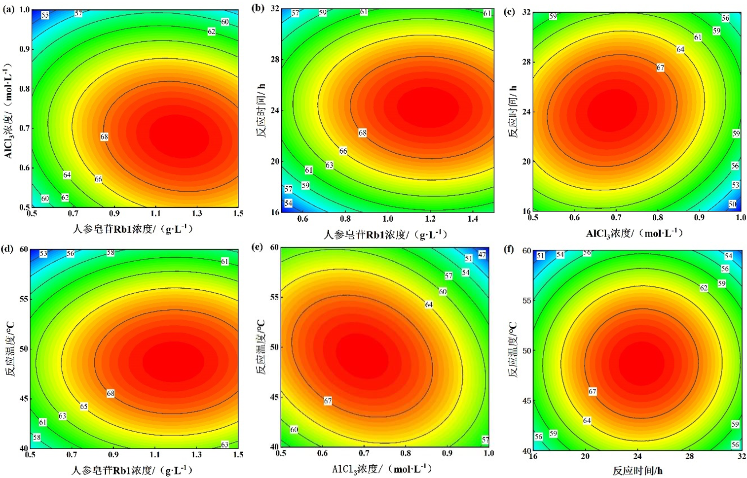 在绿色化学催化工艺开发与过程优化方面,课题组针对稀有人参皂苷转化过程中存在的反应条件苛刻及效率受限等问题,构建了基于金属离子催化的高效转化体系。通过筛选低成本金属离子Al3+催化剂并引入绿色溶剂体系,结合单因素实验与响应面优化方法,系统调控关键反应参数,建立了温和条件下的定向转化工艺。该研究从反应路径调控与催化机制层面入手,提升了目标产物生成的选择性与过程可控性,同时兼顾环境友好性与工业可行性,为稀有人参皂苷Rg5的规模化绿色制造提供了新思路。研究成果以“AlCl3催化制备稀有人参皂苷Rg5的工艺优化”为题发表于国内CSCD期刊《应用化工》,化学与工程技术专业2022级研究生高一平为第一作者,曹翠老师和孙先锋老师为共同通讯作者,黑料网 为通讯单位。